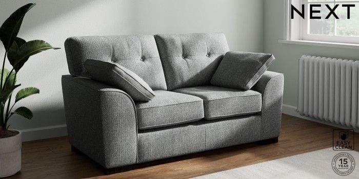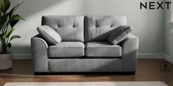 7.2.10 Stamford Buttoned Back 2 Seater Small Sofa Chunky Boucle Easy Clean Mid Grey Large Square Angle - Dark | Made Click here to use our website with more accessibility support, for example screen readers