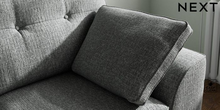 7.2.10 Stamford Buttoned Back 2 Seater Small Sofa Chunky Boucle Easy Clean Mid Grey Large Square Angle - Gunmetal | Made Click here to use our website with more accessibility support, for example screen readers
