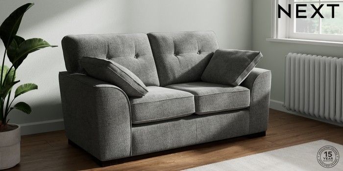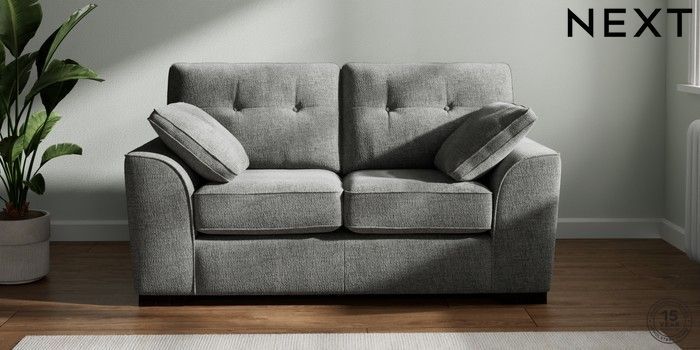 7.2.10 Stamford Buttoned Back 2 Seater Small Sofa Chunky Chenille Dark Grey Large Square Angle - Dark | Made Click here to use our website with more accessibility support, for example screen readers