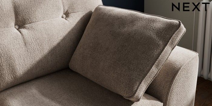 7.2.10 Stamford Buttoned Back 2 Seater Small Sofa Chunky Chenille Light Dove Large Square Angle - Chrome Metal | Made Click here to use our website with more accessibility support, for example screen readers