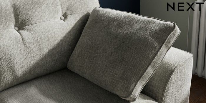 7.2.10 Stamford Buttoned Back 2 Seater Small Sofa Chunky Chenille Light Grey Large Square Angle - Dark | Made Click here to use our website with more accessibility support, for example screen readers