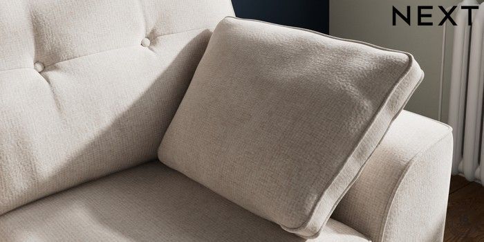 7.2.10 Stamford Buttoned Back 2 Seater Small Sofa Chunky Chenille Oyster Large Square Angle - Dark | Made Click here to use our website with more accessibility support, for example screen readers