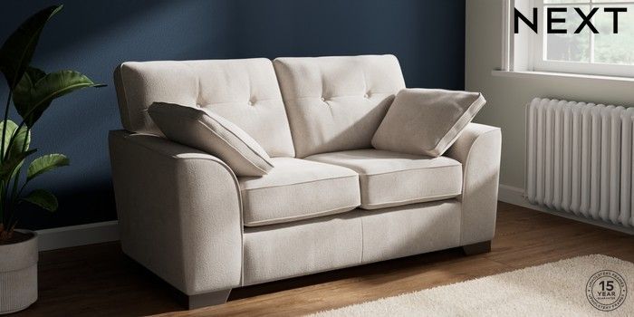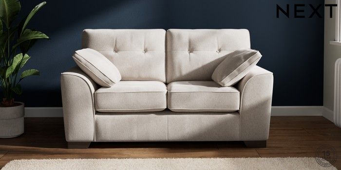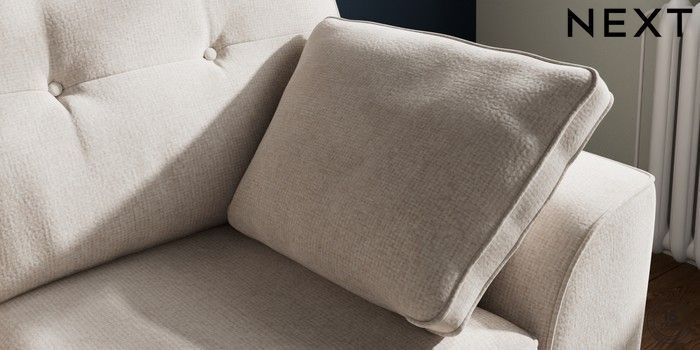 7.2.10 Stamford Buttoned Back 2 Seater Small Sofa Chunky Chenille Oyster Large Square Angle - Gunmetal | Made Click here to use our website with more accessibility support, for example screen readers