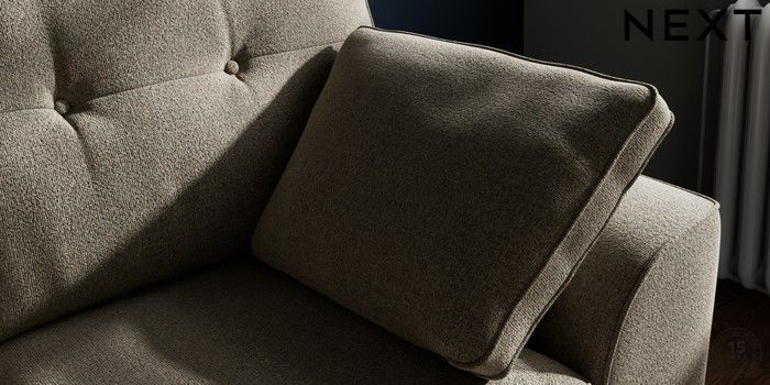 7.2.10 Stamford Buttoned Back 2 Seater Small Sofa Chunky Marl Light Olive Green Large Square Angle - Dark | Made Click here to use our website with more accessibility support, for example screen readers