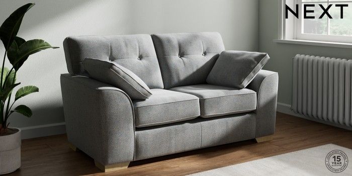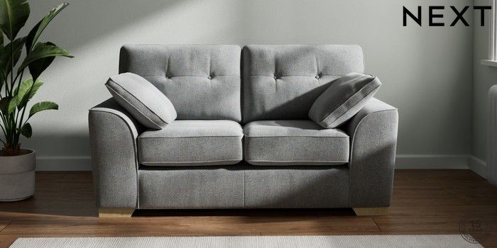 7.2.10 Stamford Buttoned Back 2 Seater Small Sofa Chunky Marl Mid Grey Large Square Angle - Light | Made Click here to use our website with more accessibility support, for example screen readers