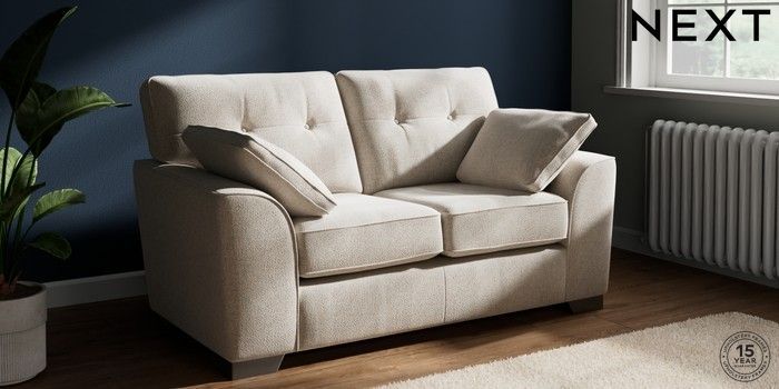 7.2.10 Stamford Buttoned Back 2 Seater Small Sofa Chunky Marl Oyster Large Square Angle - Gunmetal | Made Click here to use our website with more accessibility support, for example screen readers