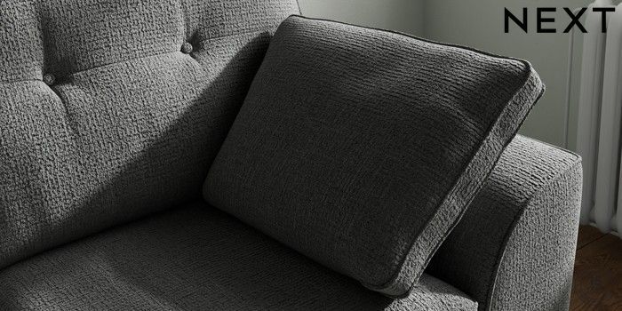 7.2.10 Stamford Buttoned Back 2 Seater Small Sofa Chunky Texture Dark Grey Large Square Angle - Brushed Brass | Made Click here to use our website with more accessibility support, for example screen readers