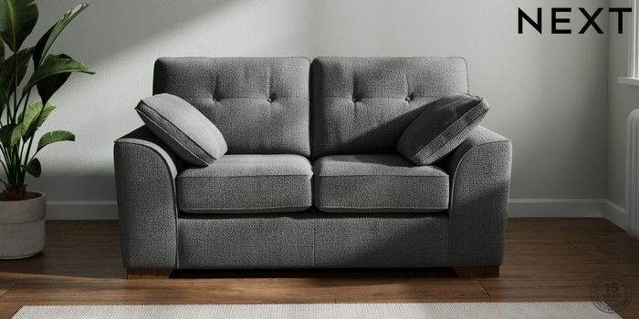 7.2.10 Stamford Buttoned Back 2 Seater Small Sofa Chunky Texture Dark Grey Large Square Angle - Mid | Made Click here to use our website with more accessibility support, for example screen readers