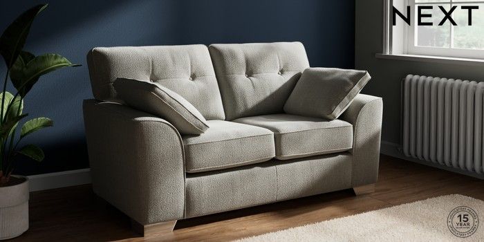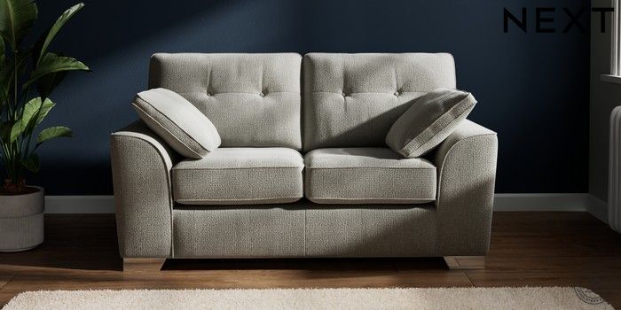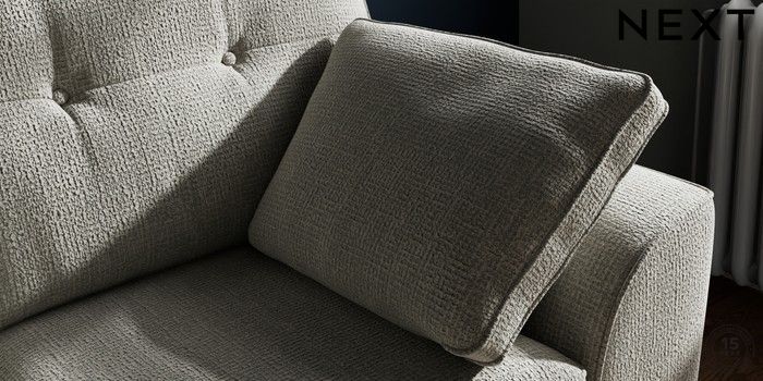7.2.10 Stamford Buttoned Back 2 Seater Small Sofa Chunky Texture Dove Large Square Angle - Chrome Metal | Made Click here to use our website with more accessibility support, for example screen readers