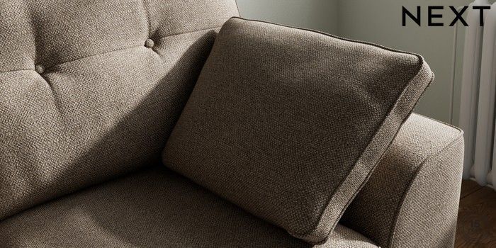 7.2.10 Stamford Buttoned Back 2 Seater Small Sofa Chunky Weave Dark Natural Large Square Angle - Dark | Made Click here to use our website with more accessibility support, for example screen readers