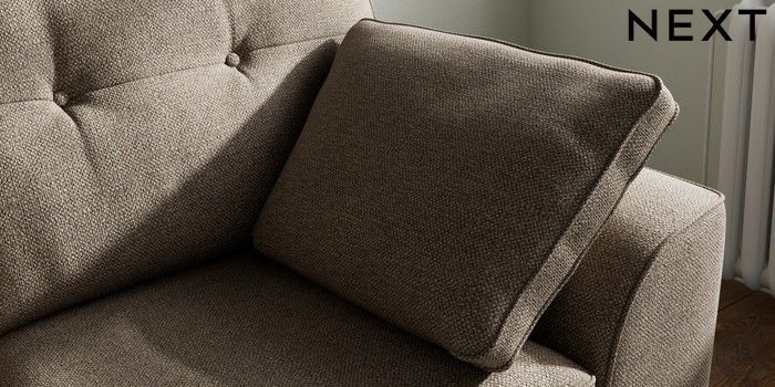 7.2.10 Stamford Buttoned Back 2 Seater Small Sofa Chunky Weave Dark Natural Large Square Angle - Gunmetal | Made Click here to use our website with more accessibility support, for example screen readers