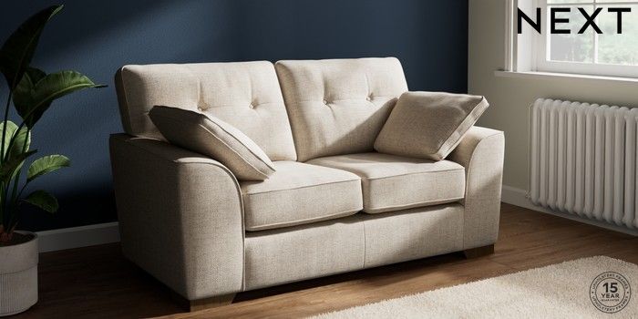 7.2.10 Stamford Buttoned Back 2 Seater Small Sofa Chunky Weave Mid Natural Large Square Angle - Mid | Made Click here to use our website with more accessibility support, for example screen readers
