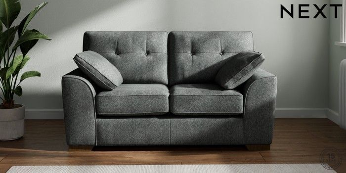 7.2.10 Stamford Buttoned Back 2 Seater Small Sofa Cotswold Chenille Dark Grey Large Square Angle - Mid | Made Click here to use our website with more accessibility support, for example screen readers