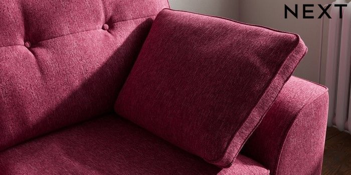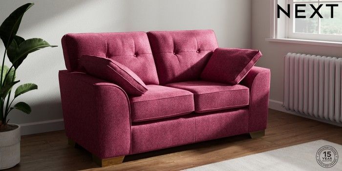 7.2.10 Stamford Buttoned Back 2 Seater Small Sofa Cotswold Chenille Dark Raspberry Pink Large Square Angle - Brushed Brass | Made Click here to use our website with more accessibility support, for example screen readers