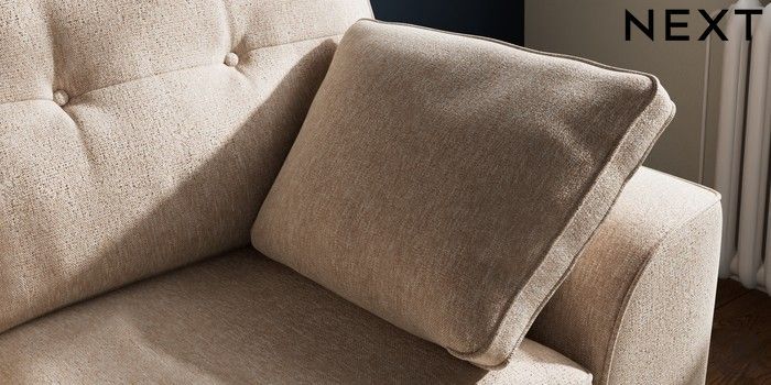 7.2.10 Stamford Buttoned Back 2 Seater Small Sofa Cotswold Chenille Light Natural Large Square Angle - Brushed Brass | Made Click here to use our website with more accessibility support, for example screen readers
