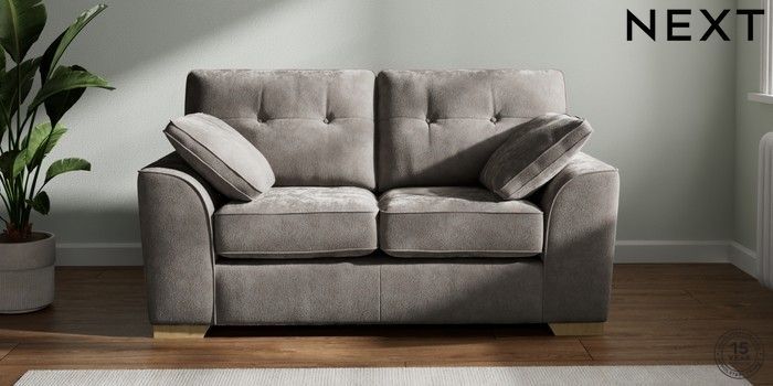 7.2.10 Stamford Buttoned Back 2 Seater Small Sofa Distressed Velour French Grey Large Square Angle - Light | Made Click here to use our website with more accessibility support, for example screen readers