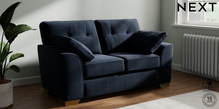 7.2.10 Stamford Buttoned Back 2 Seater Small Sofa Fine Chenille Easy Clean Dark Navy Blue Large Square Angle - Brushed Brass | Made Click here to use our website with more accessibility support, for example screen readers