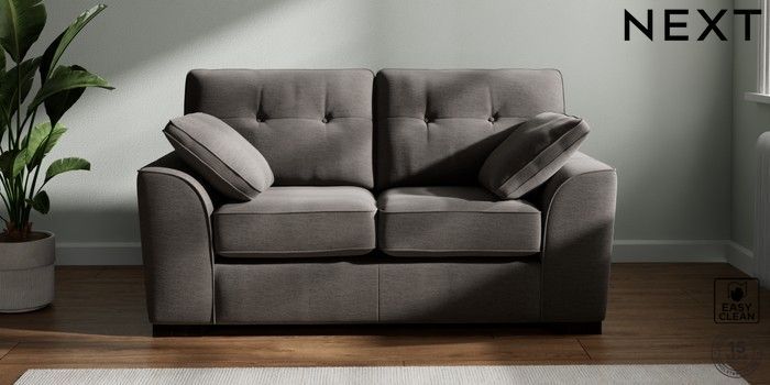 7.2.10 Stamford Buttoned Back 2 Seater Small Sofa Fine Chenille Easy Clean Dark Smoke Grey Large Square Angle - Dark | Made Click here to use our website with more accessibility support, for example screen readers