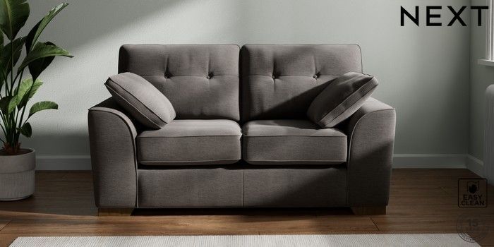 7.2.10 Stamford Buttoned Back 2 Seater Small Sofa Fine Chenille Easy Clean Dark Smoke Grey Large Square Angle - Mid | Made Click here to use our website with more accessibility support, for example screen readers