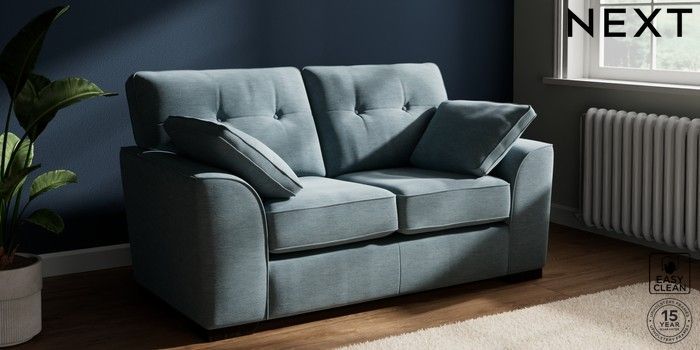 7.2.10 Stamford Buttoned Back 2 Seater Small Sofa Fine Chenille Easy Clean Mid Blue Large Square Angle - Dark | Made Click here to use our website with more accessibility support, for example screen readers