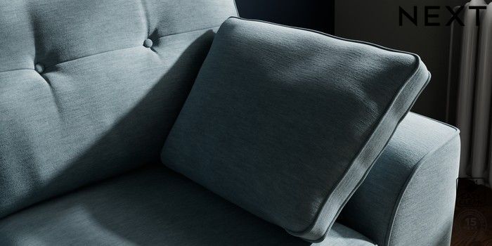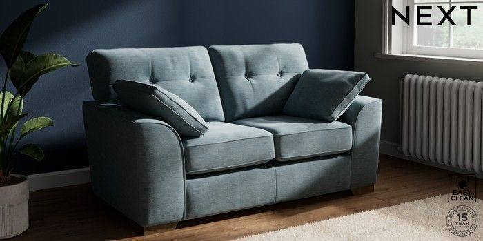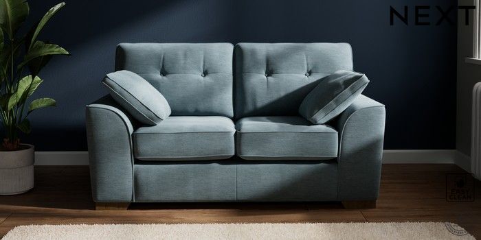 7.2.10 Stamford Buttoned Back 2 Seater Small Sofa Fine Chenille Easy Clean Mid Blue Large Square Angle - Mid | Made Click here to use our website with more accessibility support, for example screen readers