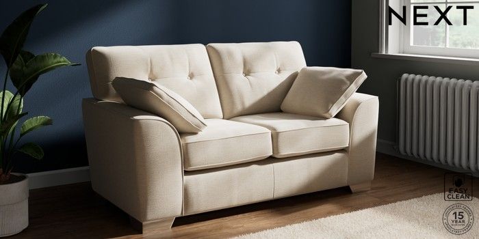 7.2.10 Stamford Buttoned Back 2 Seater Small Sofa Fine Chenille Easy Clean Oyster Large Square Angle - Chrome Metal | Made Click here to use our website with more accessibility support, for example screen readers