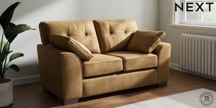 7.2.10 Stamford Buttoned Back 2 Seater Small Sofa Luxe Chenille Honey Yellow Large Square Angle - Gunmetal | Made Click here to use our website with more accessibility support, for example screen readers