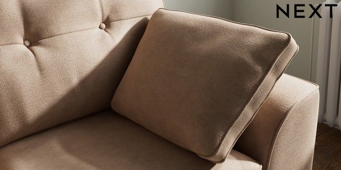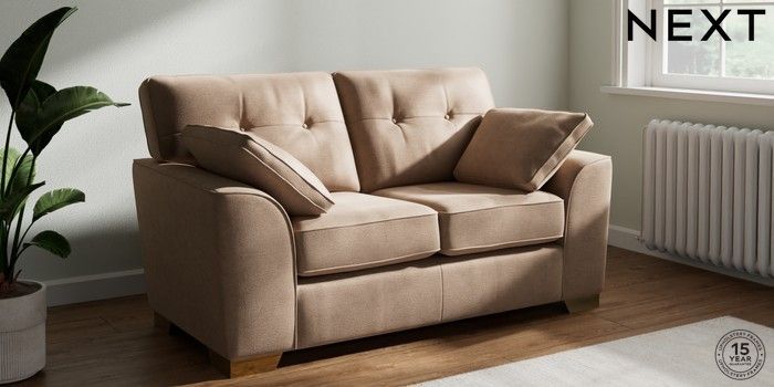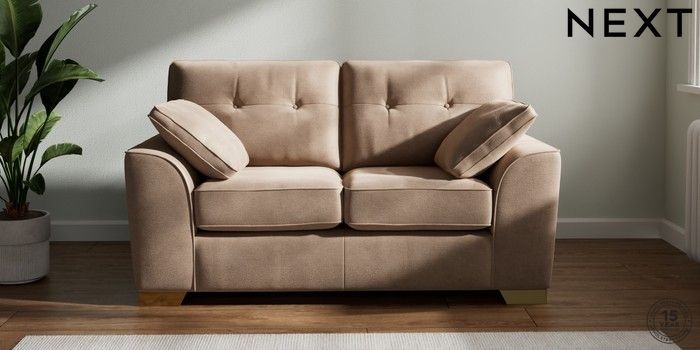 7.2.10 Stamford Buttoned Back 2 Seater Small Sofa Luxe Chenille Mid Natural Large Square Angle - Brushed Brass | Made Click here to use our website with more accessibility support, for example screen readers