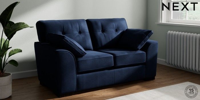 7.2.10 Stamford Buttoned Back 2 Seater Small Sofa Luxe Chenille Navy Blue Large Square Angle - Dark | Made Click here to use our website with more accessibility support, for example screen readers