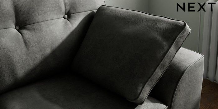 7.2.10 Stamford Buttoned Back 2 Seater Small Sofa Monza Faux Leather Easy Clean Dark Grey Large Square Angle - Chrome Metal | Made Click here to use our website with more accessibility support, for example screen readers