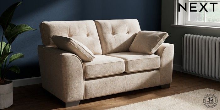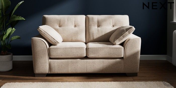 7.2.10 Stamford Buttoned Back 2 Seater Small Sofa Multi Weave Mid Natural Large Square Angle - Gunmetal | Made Click here to use our website with more accessibility support, for example screen readers