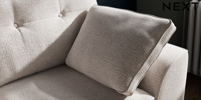 7.2.10 Stamford Buttoned Back 2 Seater Small Sofa Multi Weave Oyster Large Square Angle - Chrome Metal | Made Click here to use our website with more accessibility support, for example screen readers