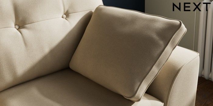 7.2.10 Stamford Buttoned Back 2 Seater Small Sofa Natural Mix Light Natural Large Square Angle - Chrome Metal | Made Click here to use our website with more accessibility support, for example screen readers