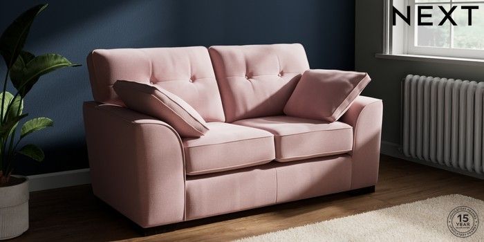 7.2.10 Stamford Buttoned Back 2 Seater Small Sofa Natural Mix Light Rose Pink Large Square Angle - Dark | Made Click here to use our website with more accessibility support, for example screen readers