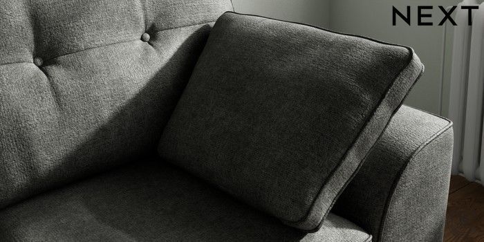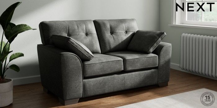 7.2.10 Stamford Buttoned Back 2 Seater Small Sofa Plush Chenille Dark Grey Large Square Angle - Gunmetal | Made Click here to use our website with more accessibility support, for example screen readers