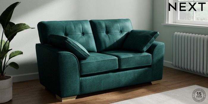 7.2.10 Stamford Buttoned Back 2 Seater Small Sofa Plush Chenille Dark Teal Green Large Square Angle - Light | Made Click here to use our website with more accessibility support, for example screen readers
