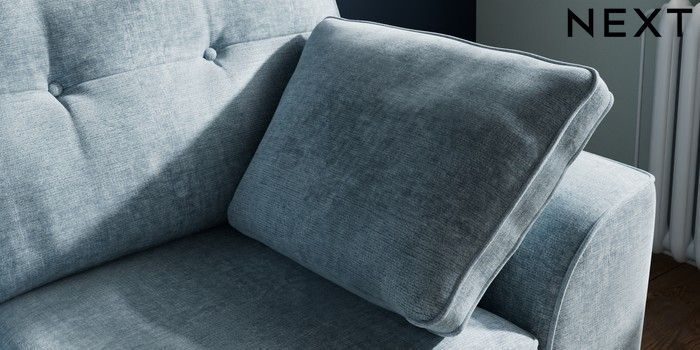 7.2.10 Stamford Buttoned Back 2 Seater Small Sofa Plush Chenille Light Blue Large Square Angle - Brushed Brass | Made Click here to use our website with more accessibility support, for example screen readers