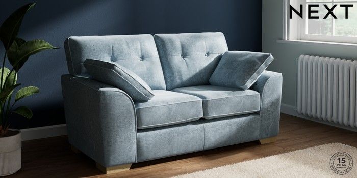 7.2.10 Stamford Buttoned Back 2 Seater Small Sofa Plush Chenille Light Blue Large Square Angle - Light | Made Click here to use our website with more accessibility support, for example screen readers