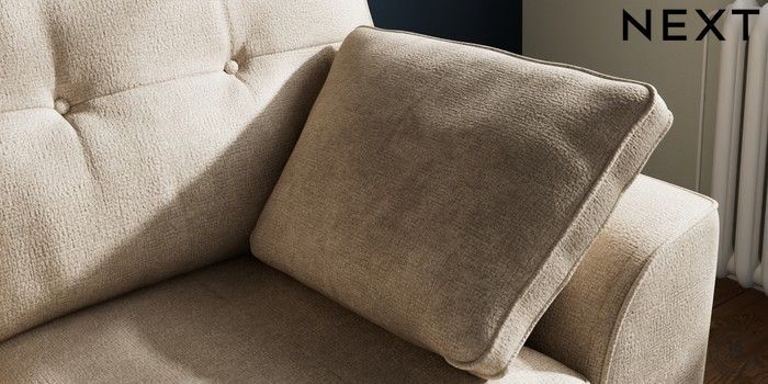 7.2.10 Stamford Buttoned Back 2 Seater Small Sofa Plush Chenille Light Natural Large Square Angle - Dark | Made Click here to use our website with more accessibility support, for example screen readers