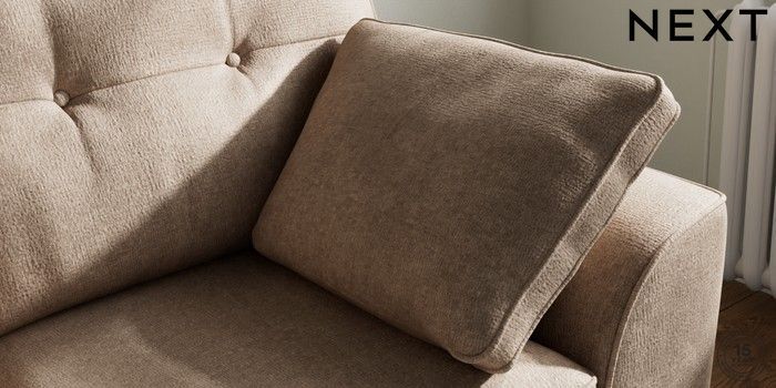 7.2.10 Stamford Buttoned Back 2 Seater Small Sofa Plush Chenille Mid Natural Large Square Angle - Chrome Metal | Made Click here to use our website with more accessibility support, for example screen readers