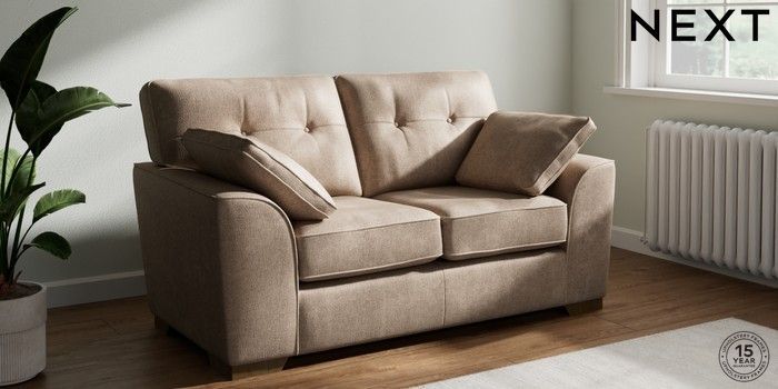 7.2.10 Stamford Buttoned Back 2 Seater Small Sofa Plush Chenille Mid Natural Large Square Angle - Mid | Made Click here to use our website with more accessibility support, for example screen readers