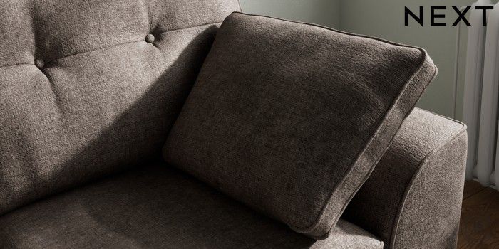7.2.10 Stamford Buttoned Back 2 Seater Small Sofa Plush Chenille Mink Brown Large Square Angle - Chrome Metal | Made Click here to use our website with more accessibility support, for example screen readers
