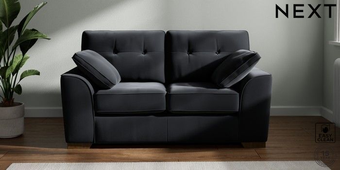 7.2.10 Stamford Buttoned Back 2 Seater Small Sofa Plush Velvet Easy Clean Charcoal Grey Large Square Angle - Mid | Made Click here to use our website with more accessibility support, for example screen readers