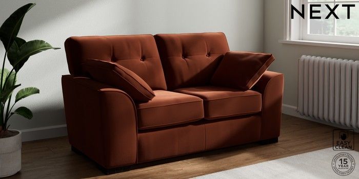 7.2.10 Stamford Buttoned Back 2 Seater Small Sofa Plush Velvet Easy Clean Ginger Orange Large Square Angle - Dark | Made Click here to use our website with more accessibility support, for example screen readers
