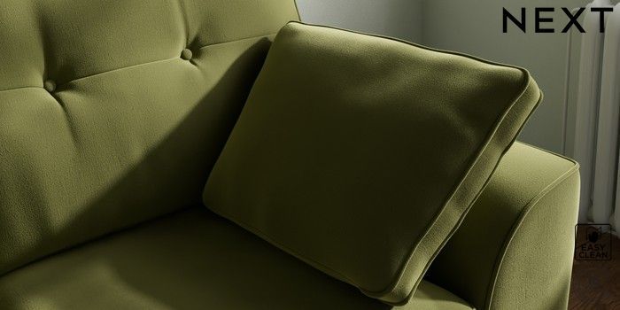 7.2.10 Stamford Buttoned Back 2 Seater Small Sofa Plush Velvet Easy Clean Mid Olive Green Large Square Angle - Dark | Made Click here to use our website with more accessibility support, for example screen readers