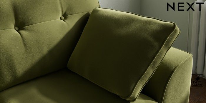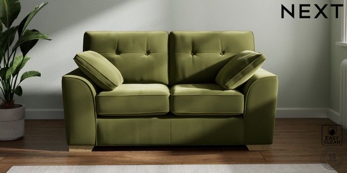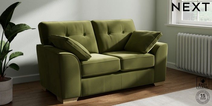 7.2.10 Stamford Buttoned Back 2 Seater Small Sofa Plush Velvet Easy Clean Mid Olive Green Large Square Angle - Light | Made Click here to use our website with more accessibility support, for example screen readers