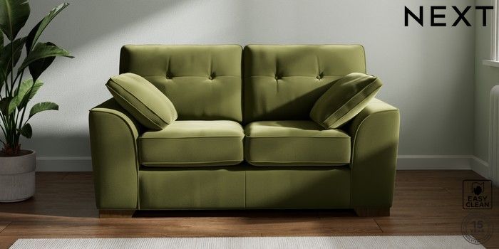 7.2.10 Stamford Buttoned Back 2 Seater Small Sofa Plush Velvet Easy Clean Mid Olive Green Large Square Angle - Mid | Made Click here to use our website with more accessibility support, for example screen readers