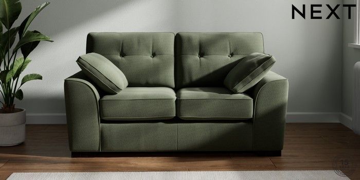 7.2.10 Stamford Buttoned Back 2 Seater Small Sofa Relaxed Linen Look Dark Green Large Square Angle - Dark | Made Click here to use our website with more accessibility support, for example screen readers