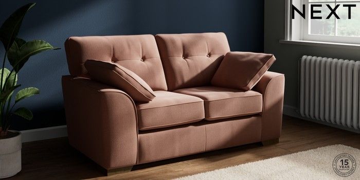 7.2.10 Stamford Buttoned Back 2 Seater Small Sofa Relaxed Linen Look Light Rust Brown Large Square Angle - Mid | Made Click here to use our website with more accessibility support, for example screen readers
