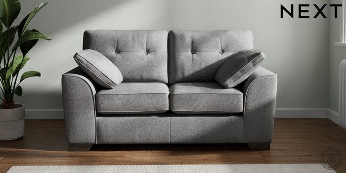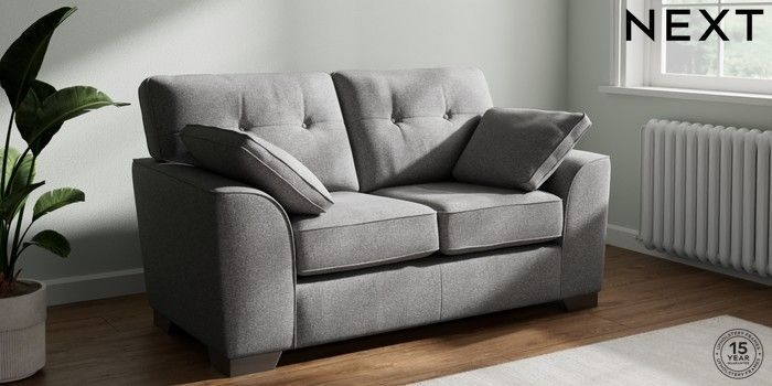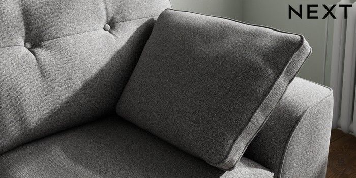 7.2.10 Stamford Buttoned Back 2 Seater Small Sofa Studio Chenille Mid Grey Large Square Angle - Gunmetal | Made Click here to use our website with more accessibility support, for example screen readers